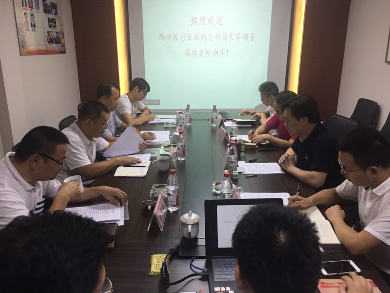 随同周志明局长一起走访调研九段律所的,还有西湖区司法局办公室主任万国军、律管科长徐至淮、三墩司法所干部周凌星等。